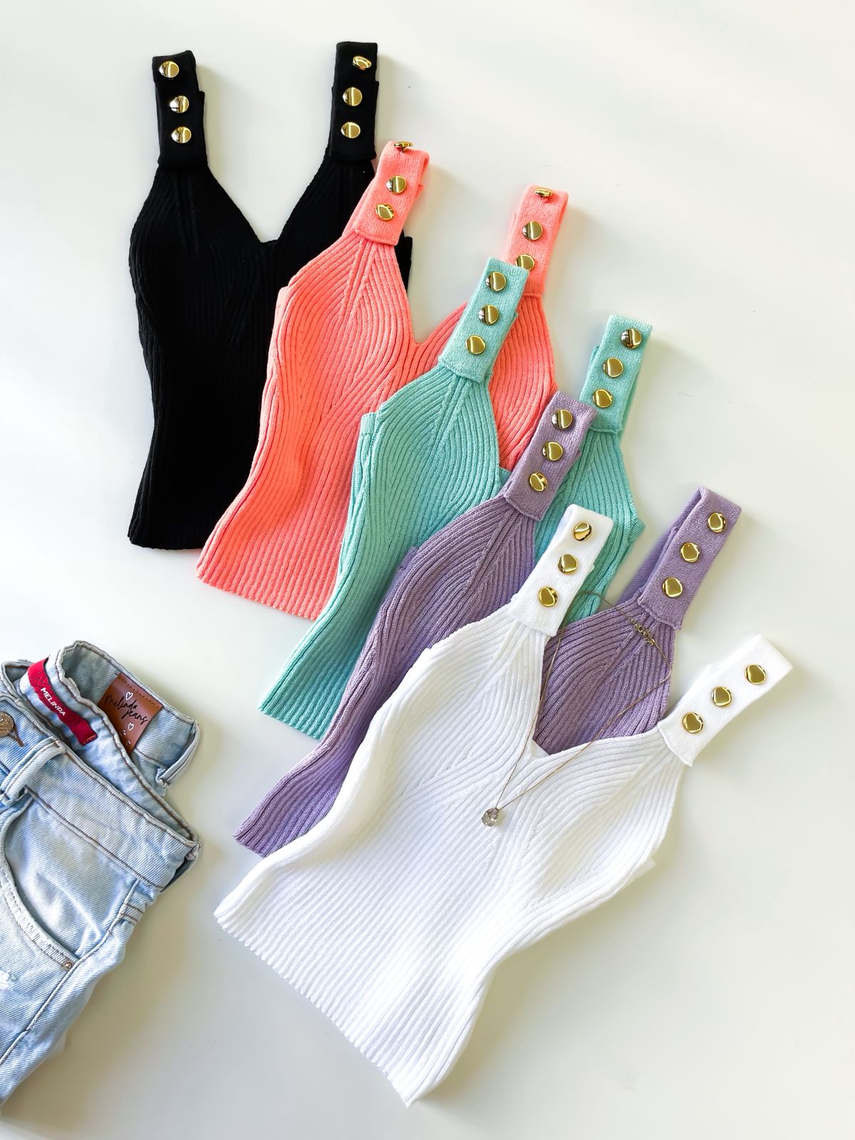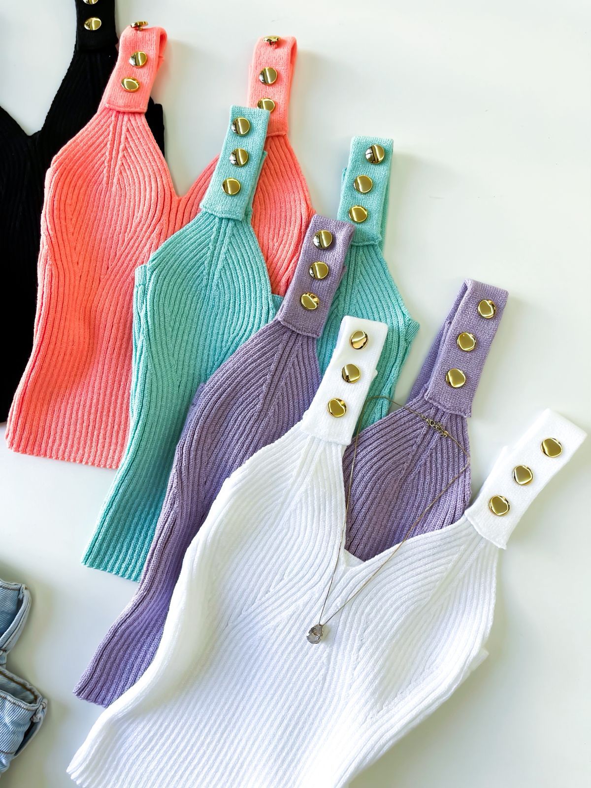 Cropped em Tricô Modal de Alça com Botões Gisele Ref. 1707