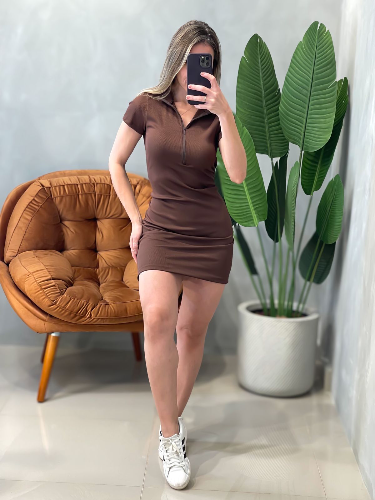 Vestido Curto em Ribana Manga Curta com Gola e Zíper Jaqueline Ref. 1670